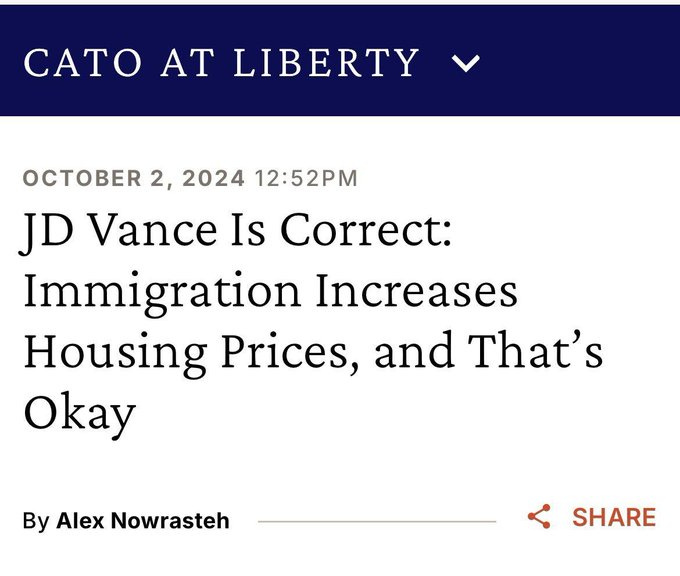 I responded: “Existing owners and renters paying more is a transfer from heritage Americans, not immigrants “saving” anyone.”