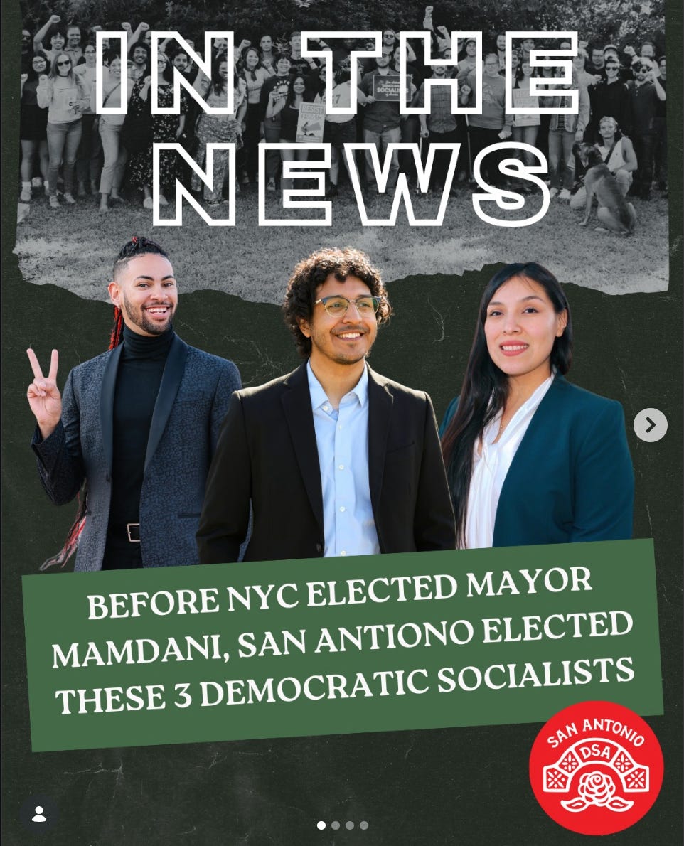 DSA strategy isn’t new, but the results are accelerating. In 2017, thirty-five DSA members held elected office in the United States. Today that number exceeds 250, a sevenfold increase in eight years, with nine out of every ten elected after 2019. San Antonio is part of this national pattern. So are the seven DSA aldermen in Chicago, the four in Portland. Small wins individually. Collectively, a growing footprint in precisely the places the right has retreated from.